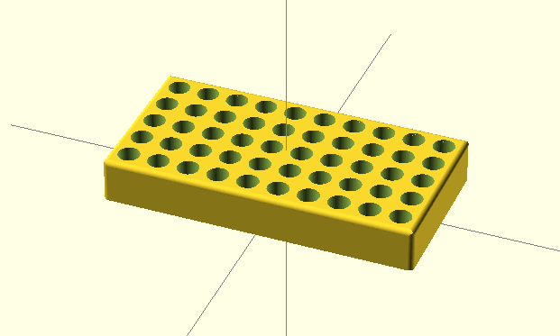 This is a customizable rack originally designed for holding capillary electrophoresis vials. The scad file allows you to change the array size, as well as the diameter of the vial slots.